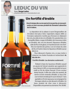 Un élément cependant plaide en faveur des vins et alcools d’érable. Le Domaine Labranche exporte depuis un moment déjà quelques produits sur le marché de la France.