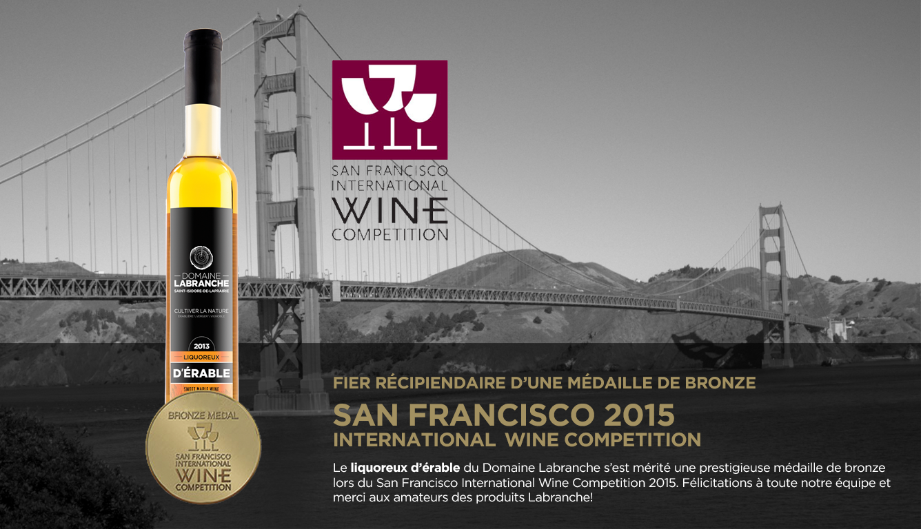 Le liquoreux d’érable s’est vu mérité une prestigieuse médaille de bronze au San Francisco International wine competition!!