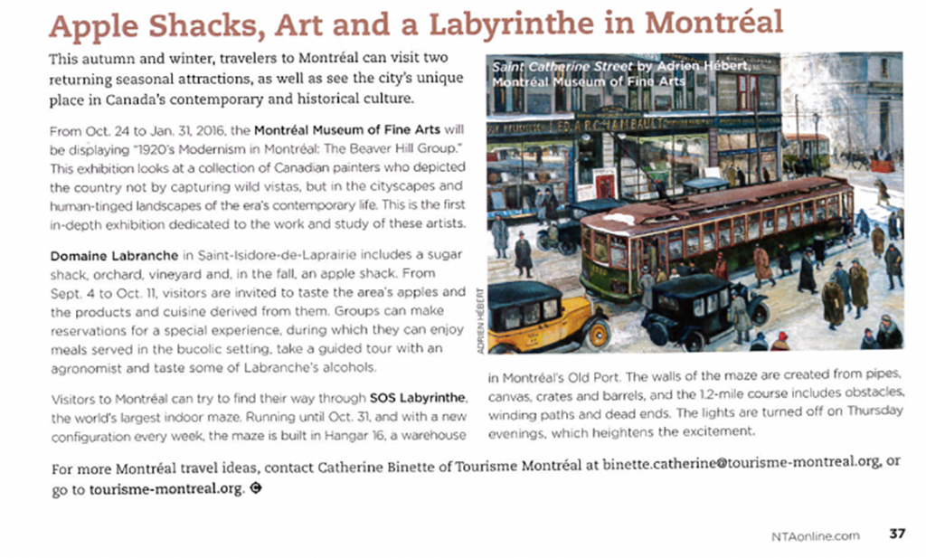 Two sugar shacks (sucreries) are Sucrerie de la Montagne or Domaine Labranche. Tip? Try sampling maple syrup taffy. Called tire-sur-neige in French (literally “pull-on-the-snow”), it’s an activity where syrup is poured on fresh snow. As soon as the sweet hits the cold, it transforms into a gooey, scrumptious toffee. Scoop it up with a popsickle stick and… mmmm (…) Pour lire l’article dans son intégralité cliquez ici.