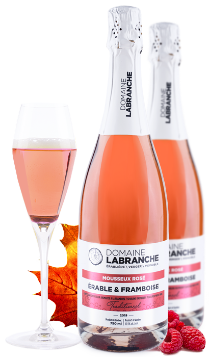 Vous souhaitez épater la galerie avec un produit festif et original? Le Rosé érable & framboise Traditionnel du Domaine Labranche séduit à tout coup avec sa couleur irrésistible, ses arômes délicats dominés par la framboise et l’eau de rose, sans compter la touche d’érable en finale. Idéal pour l’apéro, et pour un accord 100% réussi, servez-le avec un saumon fumé à l’érable ou une tarte aux framboises.